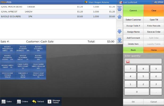 Now you are ready to add the items as part of the sale. To records this as an order click the "Save as order" button which will now become highlighted and then click the Commit button. This will prompt you if you would like to record a payment or not. In most cafe/businesses they do not take payment as this stage. Now that the order has been committed the order will be printed out for preparation.