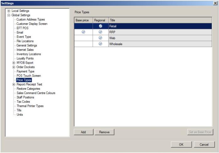 For most retail stores all you need is a RRP (recommended price) and a retail price. Set the RRP price as your base price by clicking the "Set as base price" button. In your pricing tab in your products area you will now set all your prices for your retail price NOT your base price (RRP).
