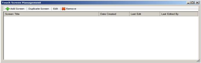 Go to the POS menu and down the bottom you will see the options "Setup Eziretail screens". On clicking this option you will be presented with the window below. Create your first screen by clicking the add screen button