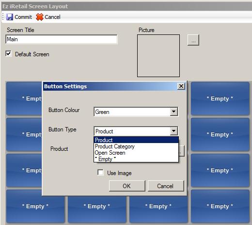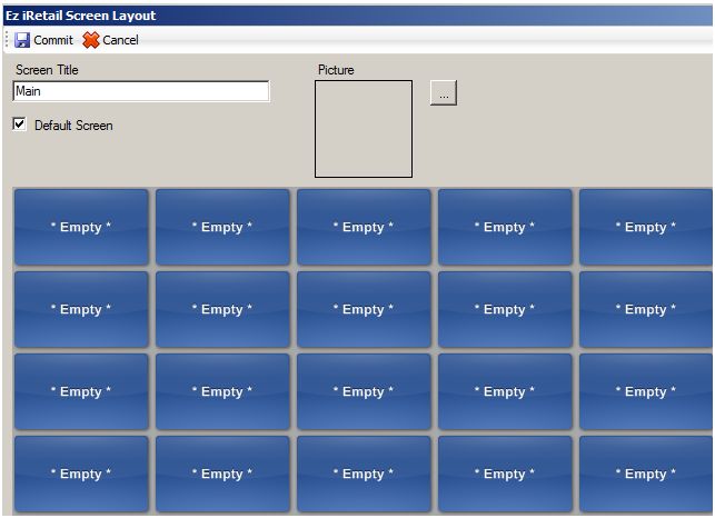 Creating your buttons. You will see below that each button position shows a blue button with the word "Empty". Any button within this text will not show up on the touch screen.