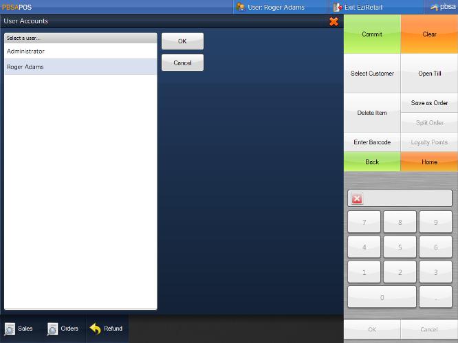 Note: It is possible for one user to have a sale partially complete and then another users switches the user to themselves and does a sale and then the first user can change the user back to them and their original sale is still on the screen.